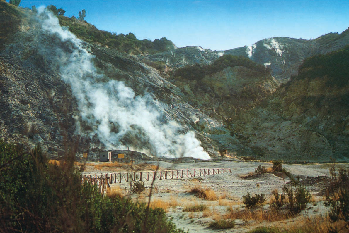 I tanti crateri spenti, alle cui assopite attività vulcaniche sono connessi fenomeni di bradisismo e termalismo, danno origine al nome “phlegràios”, in greco ardente.